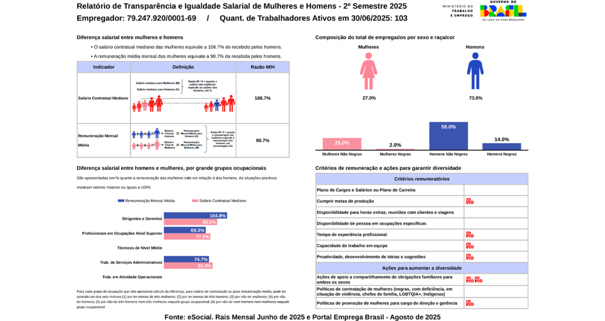 Confira o Relatório de Igualdade Salarial, documento oficial que reforça nosso compromisso com a transparência e a valorização de todos os nossos colaboradores: